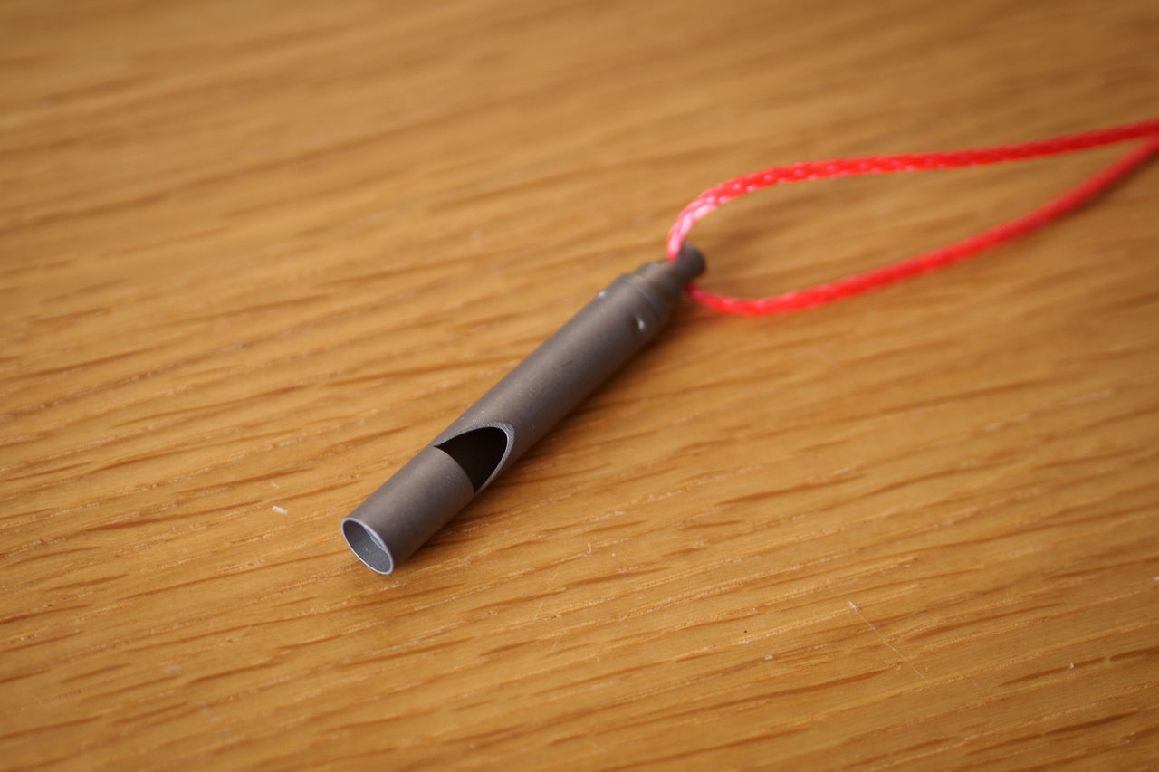 Titanium whistleの素材はチタンなので丈夫ですが、ホイッスルとしては中にプラスチック状のモノが入っていて、そこの耐久性は不明です。